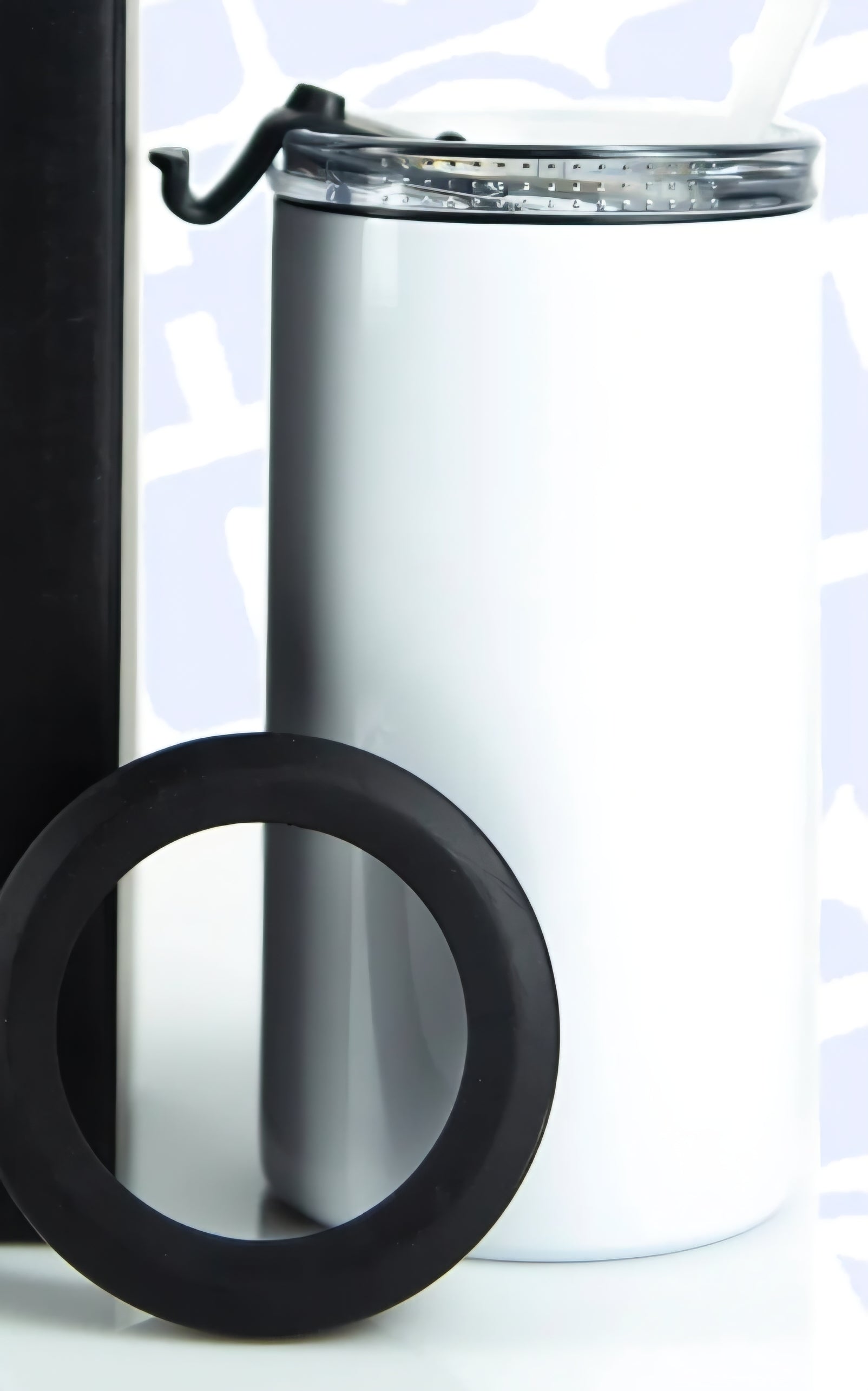 Our 16 oz 4 in 1 can cooler can be customized with any design.